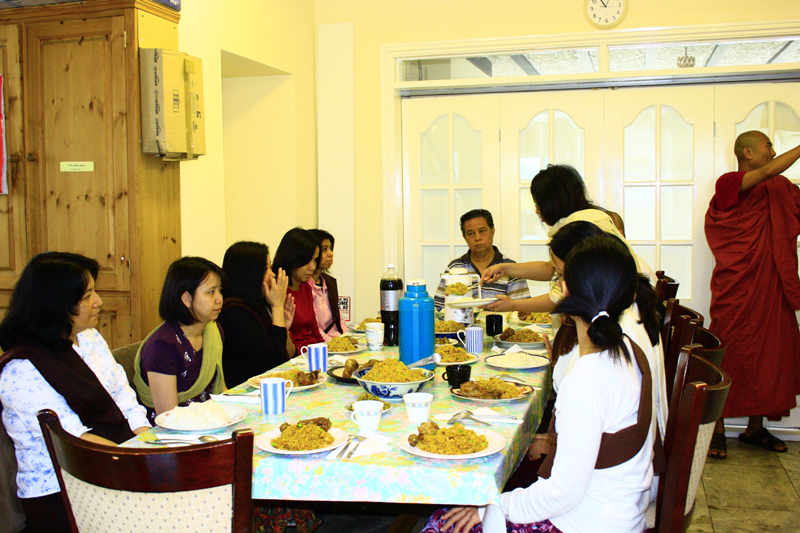 Mum's House Burmese Foods & Products - Family's Foods donation at London Vihara (Wembley). Foods are served by Mum's House Burmese Cuisine.