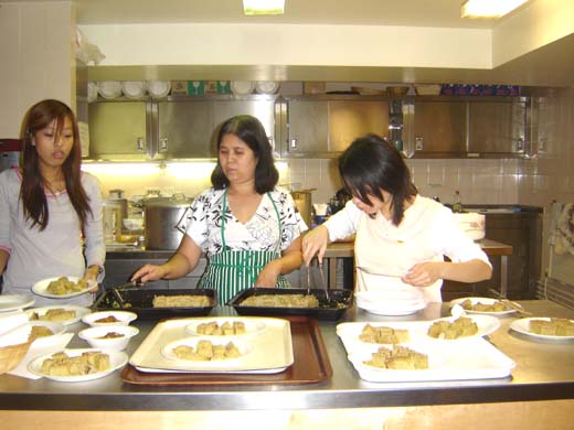 Foods are served by Mum's House Burmese Cuisine at students' dinner party.