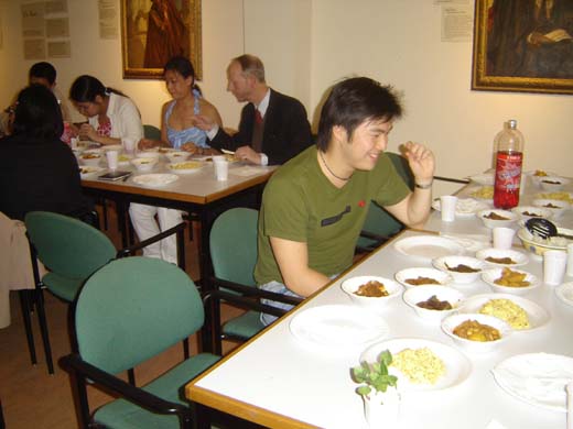 Foods are served by Mum's House Burmese Cuisine at students' dinner party.
