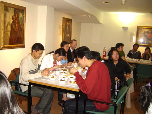 Foods are served by Mum's House Burmese Cuisine at students' dinner party.