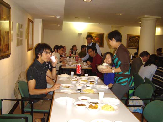 Foods are served by Mum's House Burmese Cuisine at students' dinner party.